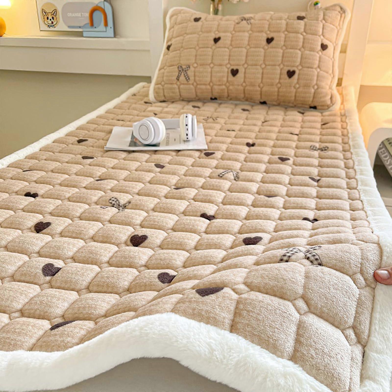 Soft Thickened Velvet Mattress Topper with 2 Pillow Covers, Warm Quilted Pad for Cozy Bedroom