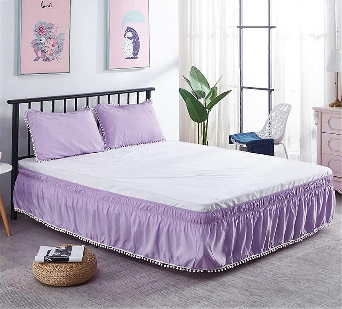 Queen Size Ruffled Bed Skirt Lilac, Full Ruffle Design, Elastic Wraparound Fit, Durable Microfiber Fabric