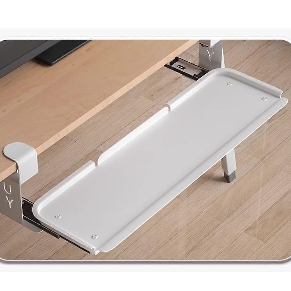 Under Desk Keyboard Tray NoDrill Metal SlideOut Platform for Keyboard and Mouse 24x8 White