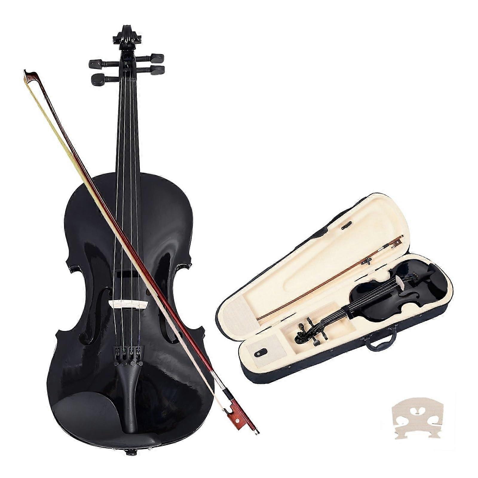 Beginner Violin Starter Kit Black Acoustic Student Fiddle with Case Bow and Ebony Fingerboard