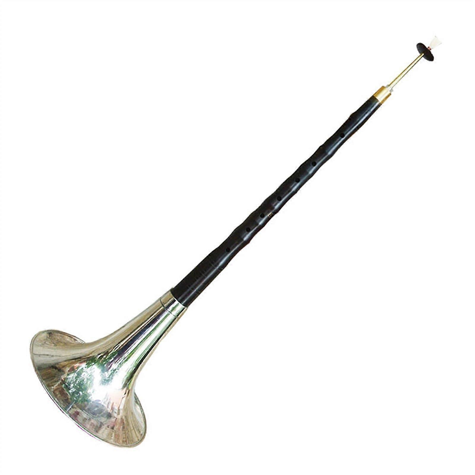 Product: suona Color: Major D Overview A handmade suona designed for beginners, students and professional players. Constructed with an ebony pole and a brass bowl, the instrument offers clear tone, comfortable handling, and durable construction for regular practice and performance. Key benefits Playability: Smooth, wellbalanced design makes the suona easy to operate for players while remaining responsive for experienced musicians. Sound quality: Brass bowl and carefully finished bore produce a bright, projecting tone suitable for solo and ensemble use. Durability: Selected ebony pole, precision digital processing, and a polished electroplated bowl improve longevity and resist surface wear. Comfortable finish: Corners and exterior surfaces are finely polished to prevent rough edges and avoid hand discomfort during extended playing. Consistent construction: Handmade assembly with controlled machining ensures reliable performance from instrument to instrument. Materials and construction Pole material: Ebony pole for stability and longterm durability. Bowl material: Brass bowl that is polished and electroplated for a bright appearance and enhanced resistance to corrosion. Process: Handmade components combined with digital processing for precise fit and consistent playability. Finish: Smooth, wellpolished surfaces that are comfortable to hold and maintain. Specifications Big E model: Rod length 44.5 CM, bowl diameter 23 CM Big drop E model: Rod length 45.2 CM, bowl diameter 26.7 CM Big D model: Rod length 46.5 CM, bowl diameter 24.5 CM Who it is for Beginners learning basic suona technique Music students in school bands and conservatories Adult players and professionals needing a reliable instrument for practice and performance Typical use scenarios School orchestra or traditional music ensemble rehearsals and performances. Outdoor or indoor cultural events where a bright, projecting wind instrument is required. Practice sessions at home or studio work where consistent tone and comfortable handling support technique development. Care and handling Wipe the instrument with a soft, dry cloth after use to remove moisture and fingerprints. Store in a cool, dry place and avoid prolonged exposure to direct sunlight or extreme humidity. Periodic inspection of joints and the bowl finish helps maintain sound quality and appearance. This suona combines traditional craftsmanship and modern processing to deliver a practical, durable instrument suitable for students and adult players across a range of musical settings.