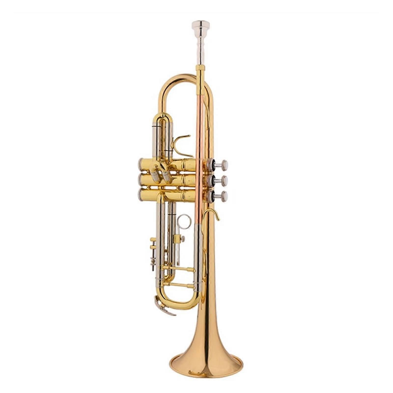 B flat trumpet designed for students and performers who need reliable tone, durable construction, and easy maintenance. Built in brass with three finish options and precise internal dimensions for consistent response and intonation. Key benefits Clear, focused tone suitable for study, exams, rehearsals, and performance. Robust construction that resists deformation and reduces maintenance needs. Durable valve system and piston material for longer service life and stable play. Adjustable components that lock moving parts in place to prevent sliding and preserve tone during performance. Main specifications Tonality: B flat Material: Brass Finish options: lacquered gold, nickel plated, silver plated Inner tube size: 11.66 mm Bell or mouth dimension: 123 mm Mouthpiece weight: 105 g Overall weight: 1.1 kg Construction and performance features Double pillar support on the main tuning slide provides extra stability and reduces the chance of deformation while giving the instrument a solid appearance. Monel pistons increase piston life and maintain reliable valve action for consistent intonation and feel. Fast spring rebound and durable valve construction improve air tightness so notes speak cleanly and tuning remains steady. Phosphor bronze mouthpiece tube enhances projection and clarity of tone. Polishing and surface treatment bring out the warm red tone of the material. Cupronickel diaphonic tube offers a silver white metallic luster, higher hardness, improved resonance frequency, and a more transparent, pleasant sound with strong corrosion resistance. Zinc alloy water release button protects inner tubes, allows timely drainage, and resists oxidation and rust for easier maintenance. Adjustable silence key uses screws to fix the pulled position of the diaphonic tube, limiting its travel and preventing unwanted sliding during play that could affect tone. Quality control Each trumpet is inspected and tested by professional quality inspectors before shipment to ensure it meets performance standards. Typical applications Classroom and band practice for students and beginners looking for a reliable learning instrument. Music examinations and auditions where stable tuning and clear tone help performance confidence. Concerts and wind orchestra use where durable valves and stable tuning are required for repeated rehearsals and performances. This trumpet combines durable materials, thoughtful mechanical design, and finish options to meet the needs of learners and performing musicians who require consistent tone, reliable valve action, and straightforward maintenance.