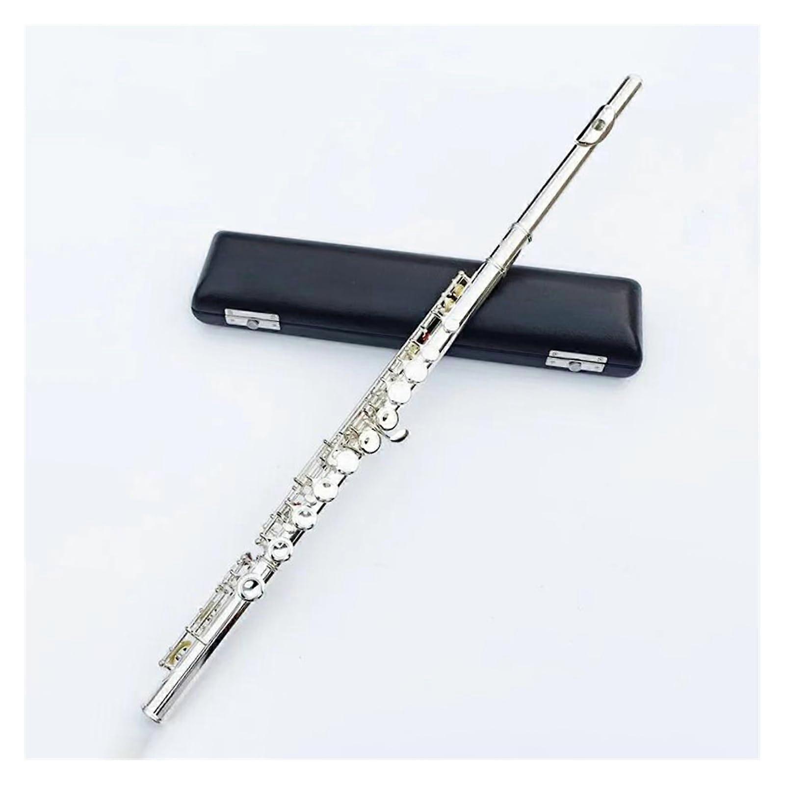 Silver Plated C Key Student Flute 16 Hole Closed Design with Case, Rich Sound and Comfortable Keys