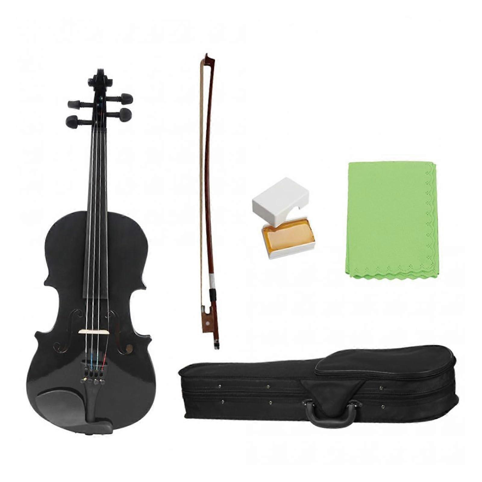 4/4 Full Size Student Violin for Beginners, Lightweight Black Acoustic Fiddle with Case and Bow