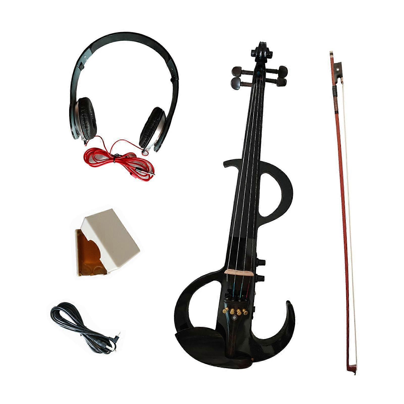 4/4 Full Size Electric Violin with Headphones for Silent Practice, Solid Wood, Ebony Fittings, Black