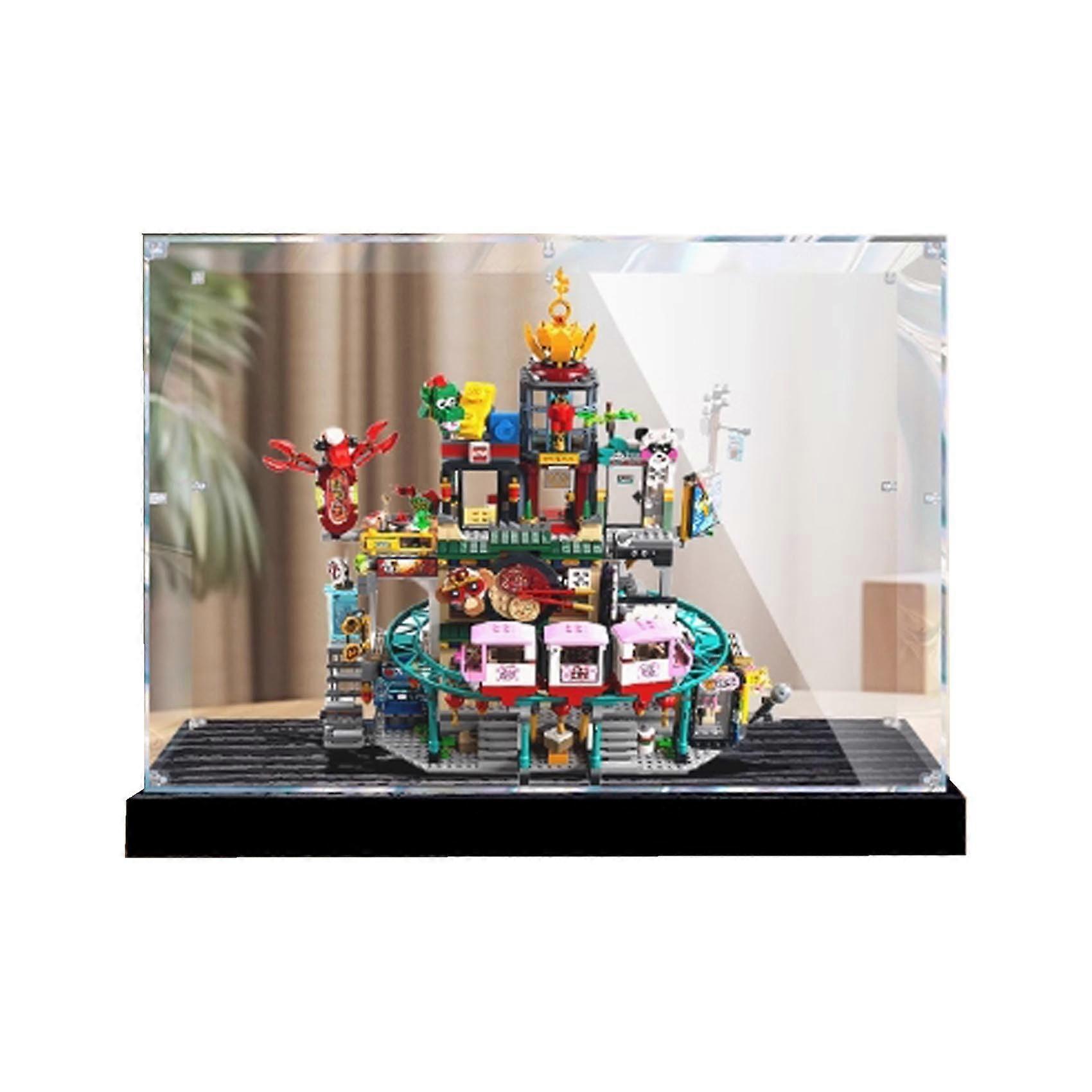 Acrylic Display Case for 80036 Lantern City Model, Clear Dustproof Box with Woodgrain Raised Base