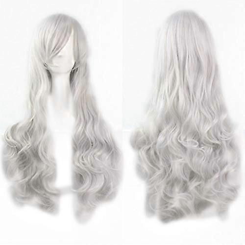 Silver Long Curly Wig with Bangs 80cm Synthetic Hair for Women Cosplay Natural Soft Texture