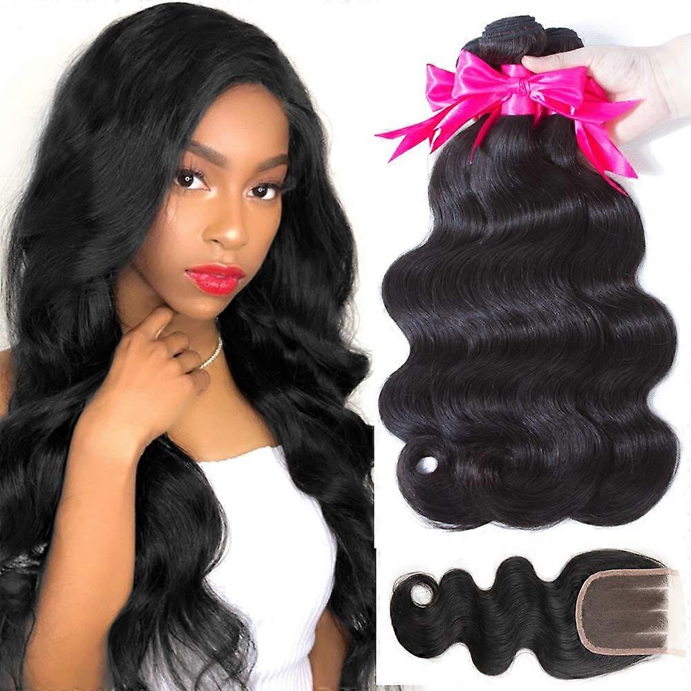 Brazilian Body Wave Hair Bundles with 4x4 Lace Closure 12 14 16+10 Inch Natural Color 3pcs