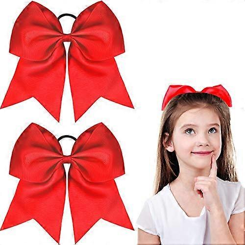 2 Pack Large Red Cheerleading Hair Bows 8 Inch Jumbo Design with Elastic Band for Teen Girls Softball
