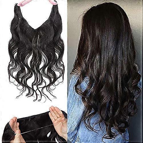 20 Inch Natural Black Wavy Halo Hair Extensions Real Human Hair with Clips Seamless Blend