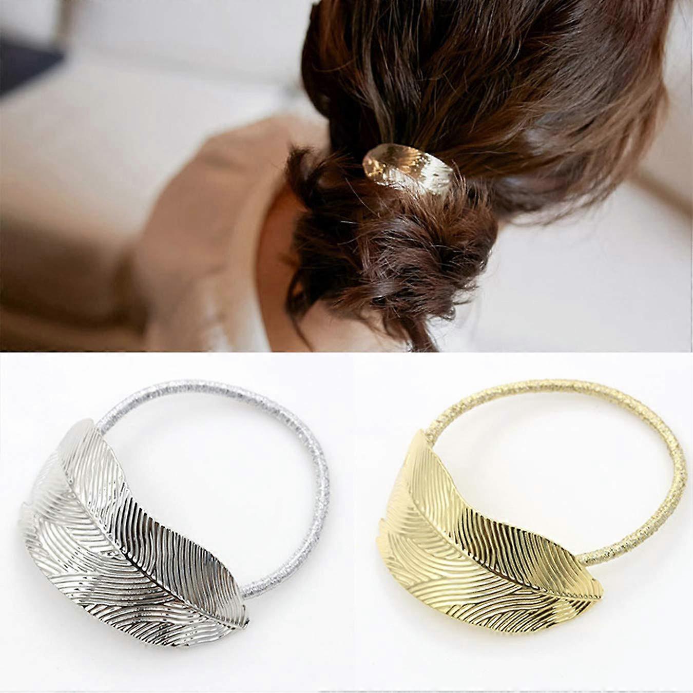 Vintage Metal Leaf Hair Tie Elastic Ponytail Holder for Women Secure Comfortable Hair Band