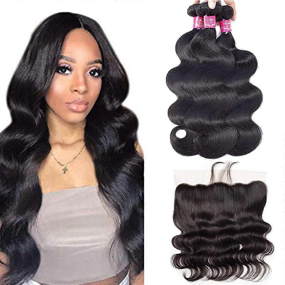 9A Brazilian Body Wave Bundles with 13x4 Frontal 100% Unprocessed Virgin Human Hair Extensions Natural Color 18 20 22+16
