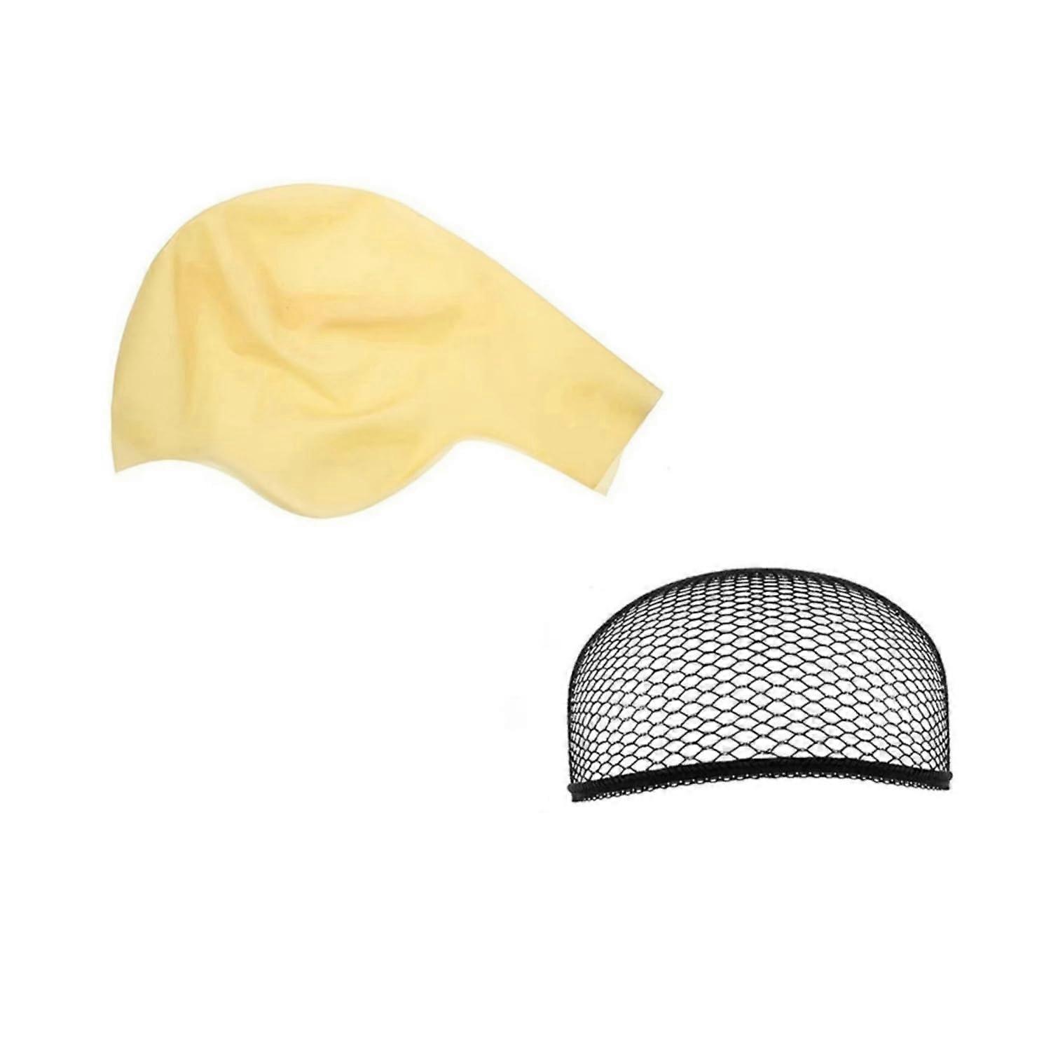 What you get One latex bald cap and one nylon wig cap. Main benefits Conceals and contains natural hair for a smooth, even scalp appearance that simplifies wig application and costume makeup. Stretchy latex conforms to the head for a snug fit while remaining comfortable for extended wear. Nylon wig cap keeps hair flattened and secure and can be trimmed for a custom fit around the ears or hairline. Flesh color provides a realistic base that can be matched to skin tone with cosmetic products. Key features Contents: 1 latex bald cap, 1 nylon wig cap. Material: Bald cap made of stretchy latex for smooth feel and close fit. Wig cap made of elastic nylon for stretch and comfort. Size: Head circumference 58 cm / 22.8 inches. One size fits most head shapes. : Nylon cap can be cut to size. Latex cap edges accept liquid latex for blending into the skin and can be covered with makeup for a seamless finish. How to use 1. Put on the nylon wig cap to hold and flatten existing hair. 2. Stretch the latex bald cap over the head so it fits snugly. 3. Optionally apply liquid latex to the cap edge and press to the skin for a seamless bond. 4. Use cosmetics to match the bald cap to your skin tone and finish the look. Typical applications Cosplay and costume events where a bald or hairless look is required. Stage, theater, and film makeup to create a smooth scalp base for prosthetics or special effects. Halloween, pranks, or photo shoots when a realistic bald appearance is needed. Practical notes The nylon wig cap can be trimmed for comfort and better fit. Use recommended cosmetic adhesives and makeup products for blending results. Follow normal makeup and removal procedures for latex products.