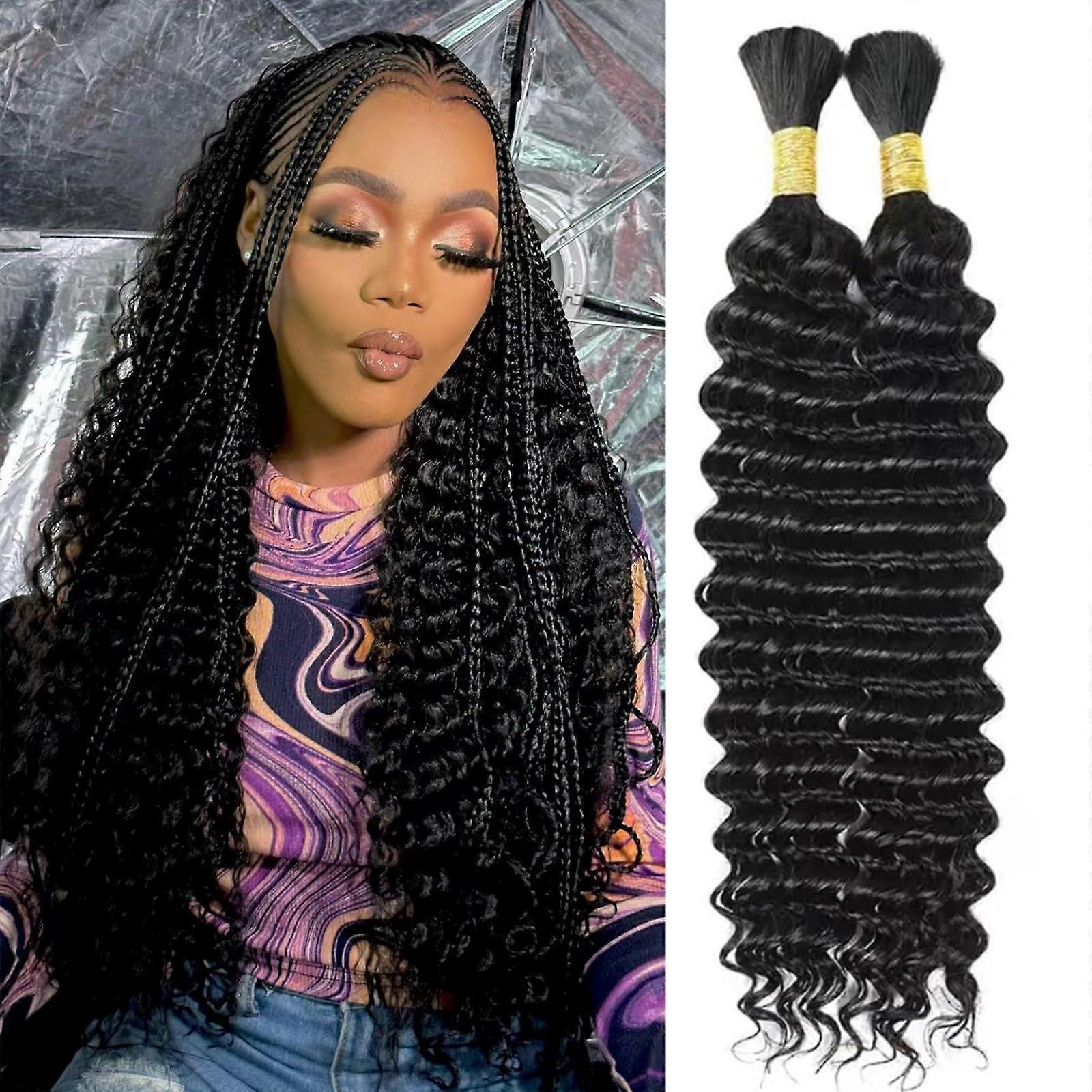 Human Braiding Hair Deep Wave 22 Inch No Weft Bulk Extensions for Natural Boho Braids 2 Bundles