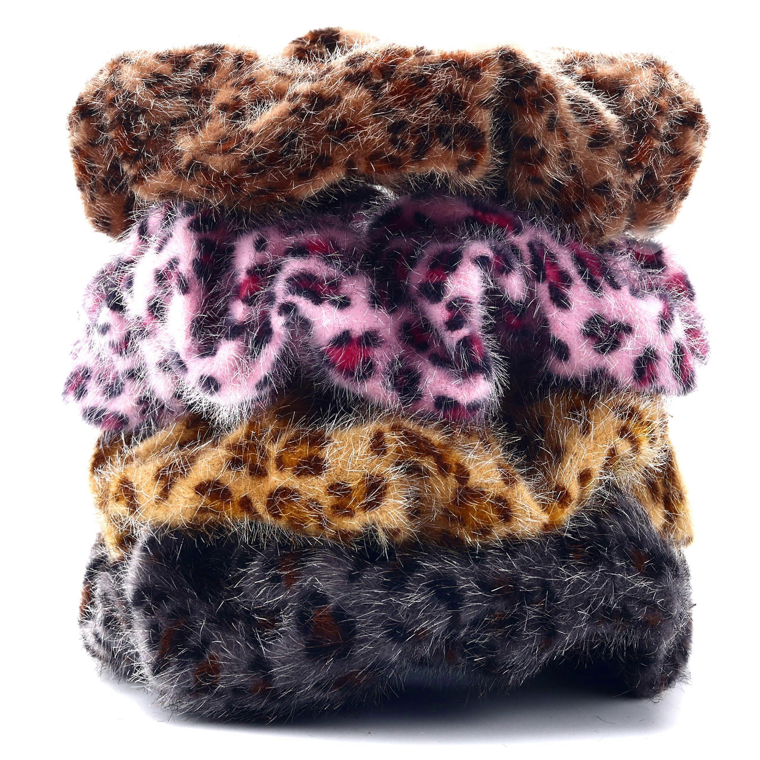 Leopard Print Velvet Hair Scrunchies 4 Pack Soft NoDamage Elastic Bands for Women and Girls