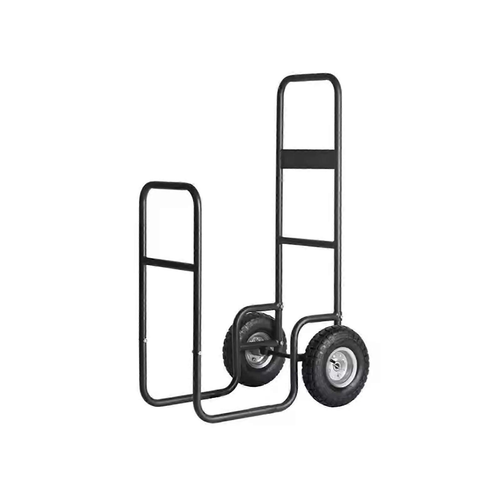 Heavy Duty Firewood Cart with Large Non‑Slip Wheels, Steel Log Carrier for Indoor and Outdoor Fireplace Use, Black