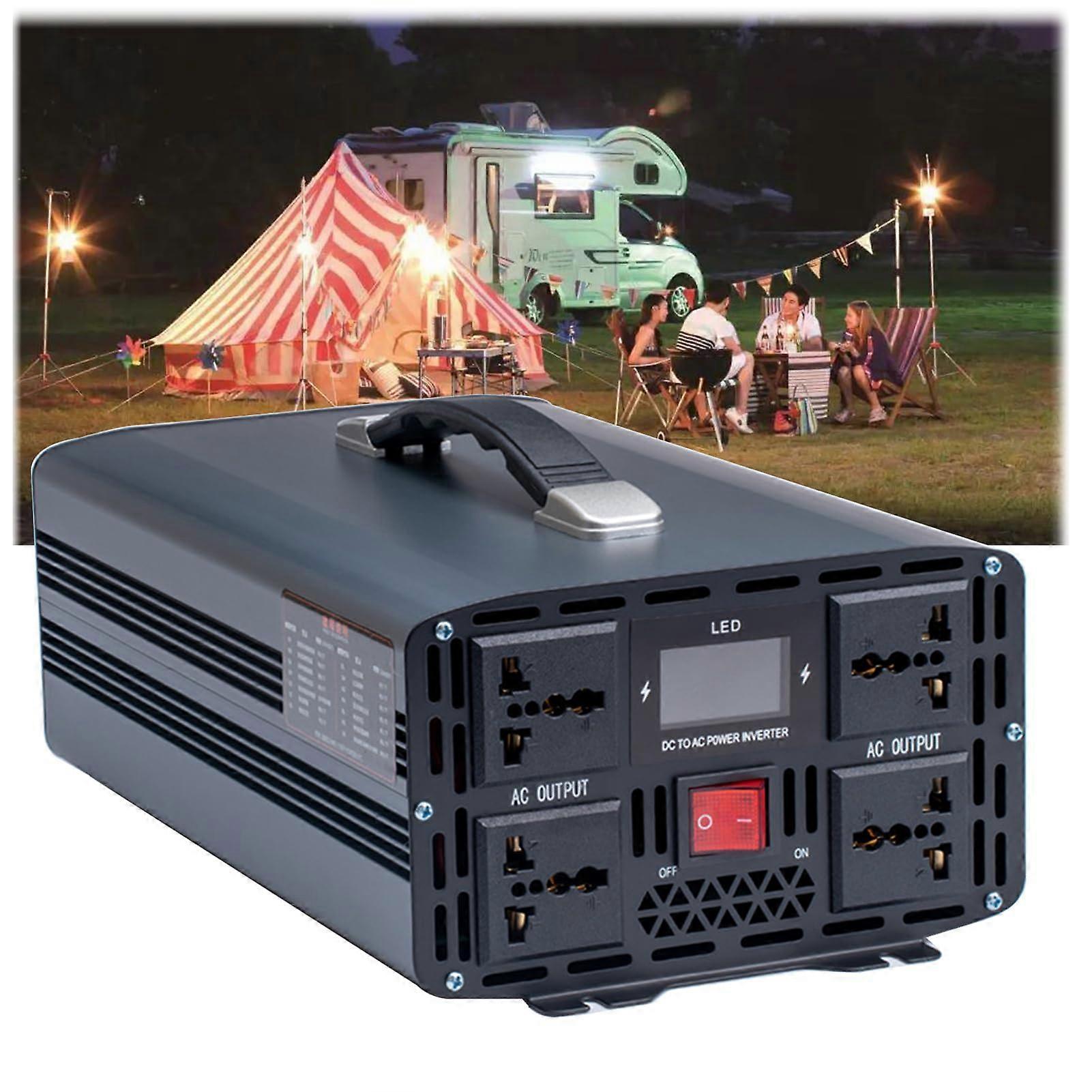 Pure Sine Wave Power Inverter Description A reliable pure sine wave inverter that converts DC vehicle or battery power into clean AC power for sensitive electronics and household appliances. Designed for stable output, efficiency, and multiple builtin protections. Key benefits Clean, reliable power: Pure sine wave output produces smoother, lowernoise electricity than modified sine wave inverters, reducing interference with sensitive electronics and appliances. Wide input compatibility: Accepts 12V, 24V, 48V, or 60V DC input to match a variety of battery systems. Flexible output options: Selectable AC output of 110V/120V or 230V/240V with 50Hz or 60Hz frequency to suit regional requirements. performance and efficiency: Rated power 3000W with an initial peak capacity of 6000W for startup surges; conversion efficiency greater than 90% and low noload losses for more efficient operation. Robust construction and cooling: Large aluminum alloy housing offers impact resistance and durability, while integrated smart cooling fans reduce heat and help maintain reliable operation. Comprehensive protection: Builtin safeguards for input overvoltage and undervoltage, output short circuit, overload, overcurrent, short circuit, and overtemperature to protect connected devices and the inverter itself. Specifications Waveform: Pure sine wave Input voltage: 12V, 24V, 48V, 60V DC Output voltage: 110V/120V or 230V/240V AC Rated power: 3000W Initial peak (surge) power: 6000W Frequency: 50Hz or 60Hz Efficiency: Greater than 90% Materials: Aluminum alloy shell; electronic components Practical use scenarios Home backup during power outages: Run refrigerators, lights, televisions, and charge phones and laptops so essential devices stay powered during interruptions. RVs, campers, and boats: Power small air conditioners, freezers, TVs, and kitchen appliances while offgrid or traveling. Field work and job sites: Provide AC power for power tools, chargers, and lighting where a conventional power supply is not available. What is included 1 x Sine Wave Inverter This inverter is intended for applications requiring clean AC power from DC sources, offering conversion efficiency, multiple voltage compatibility, and builtin protections for safe operation.
