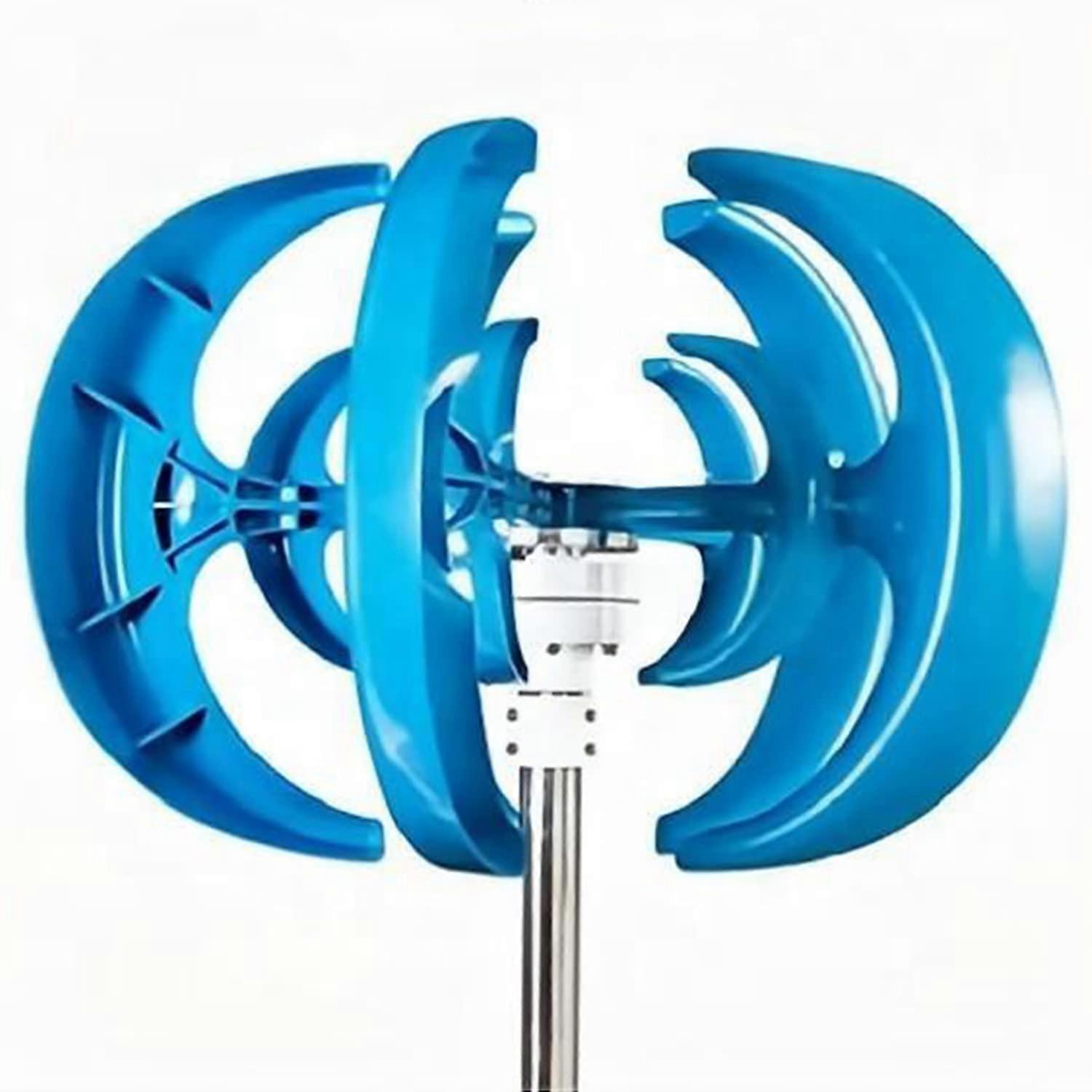 3000W Vertical Wind Turbine Generator 12V Blue Overview A compact vertical axis wind turbine designed for smallscale offgrid power generation. This suspended lanternshaped generator provides a reliable source of electricity for homes, gardens, campsites, boats, and mobile living spaces. Color: Blue. Size: 12V version available. Key benefits Generate electricity from wind to supplement battery systems and reduce reliance on grid power. Lownoise vertical design for quieter operation in domestic and recreational settings. Easy to install and maintain thanks to a simple fiveblade configuration and accessible components. Broad operating temperature range and robust materials for reliable performance in varied conditions. Main features Rated power: 3000W. Rated voltage: 12V (also compatible with 24V systems depending on controller configuration). Generator type: Threephase AC permanent magnet generator for consistent output. Blade design: Five nylon fiber blades optimized for aerodynamic efficiency and durability. Housing: Aluminum alloy shell with nylon fiberboard components for a lightweight, corrosionresistant structure. Wind wheel diameter: 0.9 m. Initial wind speed to start generating: 2 m/s. Rated wind speed: 13 m/s. Automatic wind angle and speed adjustment for stable performance. Working temperature: 40 C to 80 C. weight: 13 kg. Packing size: 60 x 40 x 30 cm. Applications and use scenarios Home backup power: Charge batteries and provide auxiliary power to outdoor lighting, pumps, and small appliances at remote or offgrid properties. Camping and RV use: Mount on a campsite pole or on a vehicle support to recharge 12V battery banks for refrigeration, lighting, and electronics. Marine and small craft: Suitable for boats and decks where a vertical axis layout and fiveblade design deliver steady generation with limited deck space. Included items 1 x wind turbine generator set 1 x controller 1 x flange Bolts and nuts 5 x nylon blades 1 x English assembly instructions Important assembly and connection notes Handle the generator carefully during assembly. Do not drop, strike, or force parts into place to avoid damage. Follow the wiring diagram on the controller exactly when making electrical connections. Incorrect wiring can prevent operation or damage components. After assembly, check that all screws and fasteners are tightened before initial use. Install the turbine in a location with adequate wind exposure and secure mounting to prevent movement or vibration. Performance and maintenance The fiveblade nylon design simplifies replacement and while improving annual energy capture compared to basic blade shapes. Periodic inspection of blades, fasteners, and electrical connections is recommended to maintain performance. This vertical wind turbine provides a practical solution for smallscale wind energy generation where compact size, low noise, and straightforward installation are priorities.