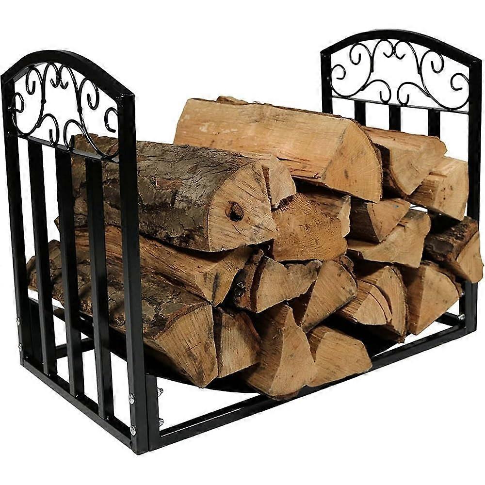 Firewood Rack with Decorative Leaf Pattern, Metal Indoor Outdoor Storage Holder for Fireplace