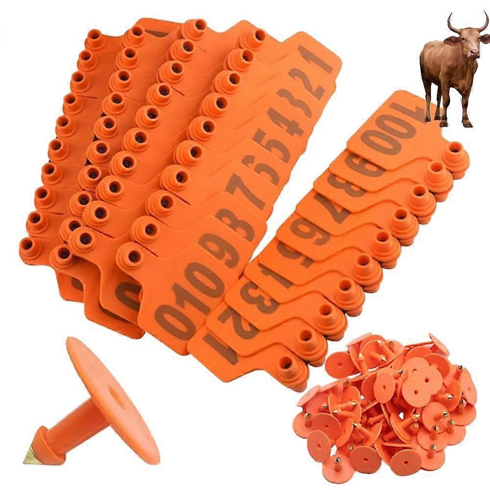Thickened plastic cow ear tag Color: Orange Size: No.201300 Product highlights Pack contents: 100 cow ear tags numbered 201 to 300. Only ear tags are included; ear tag pliers are not included. Color: Orange. Other color options include blue, yellow, green, pink, and red. Size: 2.36 in x 2.95 in (6 x 7.5 cm). Material: Made from TPU for flexibility and durability. Numbering: Laser printed numbers for clear, longlasting identification. Why this product helps Reliable identification: Laser printed numbers make individual animals easy to locate and record, simplifying herd management and record keeping. Weather resistant performance: TPU construction is softer yet durable, resistant to fading and able to withstand hot and cold conditions. Theft deterrent and tracking: Visible, numbered tags help deter theft and make it easier to track animals during transport, grazing, or at events. Easy to match to existing systems: Standard size and clear numbering make these tags suitable for routine tagging, inventory, and audit tasks. Key features and performance Durable TPU material provides tear resistance while remaining flexible for comfortable wear. Laser printing produces sharp, legible numbers that resist fading from sun exposure. Standard dimensions fit common ear tag applicators and tagging sites on cattle, sheep, goats, and pigs. Sold in bulk packs of 100 for consistent numbering across a herd or flock. Common use scenarios Routine herd identification: Tag a group of cattle for farm records, breeding logs, or feed tracking. Sorting and sales: Use numbered tags at auctions or markets to keep animals organized and matched to paperwork. Pasture management and inventory: Tag animals to monitor rotation, grazing groups, or seasonal moves and to aid in recovery if animals stray. Compatibility and notes Suitable for cattle, bulls, cows, sheep, goats, pigs and other livestock that accept standard ear tags. This listing is for 100 ear tags numbered 201 to 300 in orange. Only ear tags are included; tag pliers or applicators must be purchased separately.