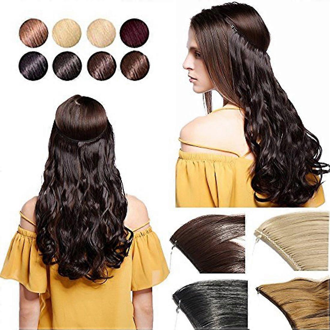 20 Inch Invisible Halo Hair Extensions Curly Dark Auburn to Light Auburn Synthetic Heat Resistant