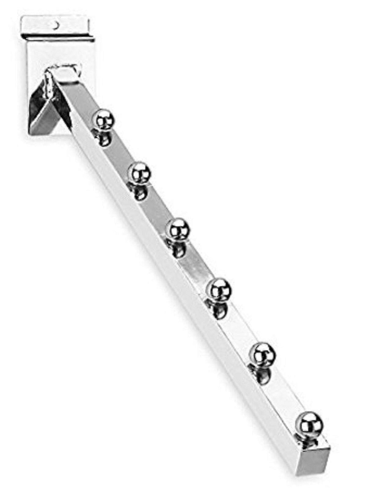 Chrome Slatwall 6 Ball Waterfall Hook 2 Pack for Clothing Display, Durable Finish and Easy Mount