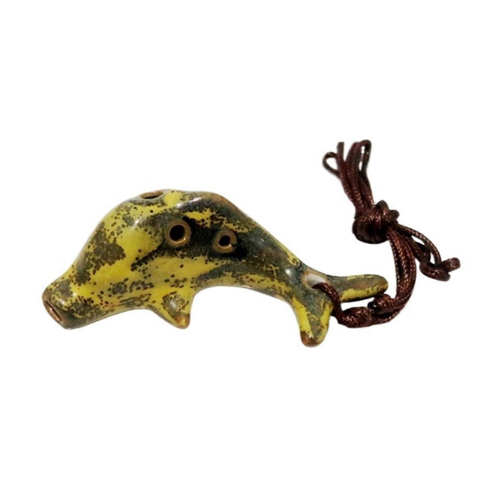 Ceramic Ocarina 6 Hole Mini Yellow Pocket Instrument for Beginners with Bright Clear Sound