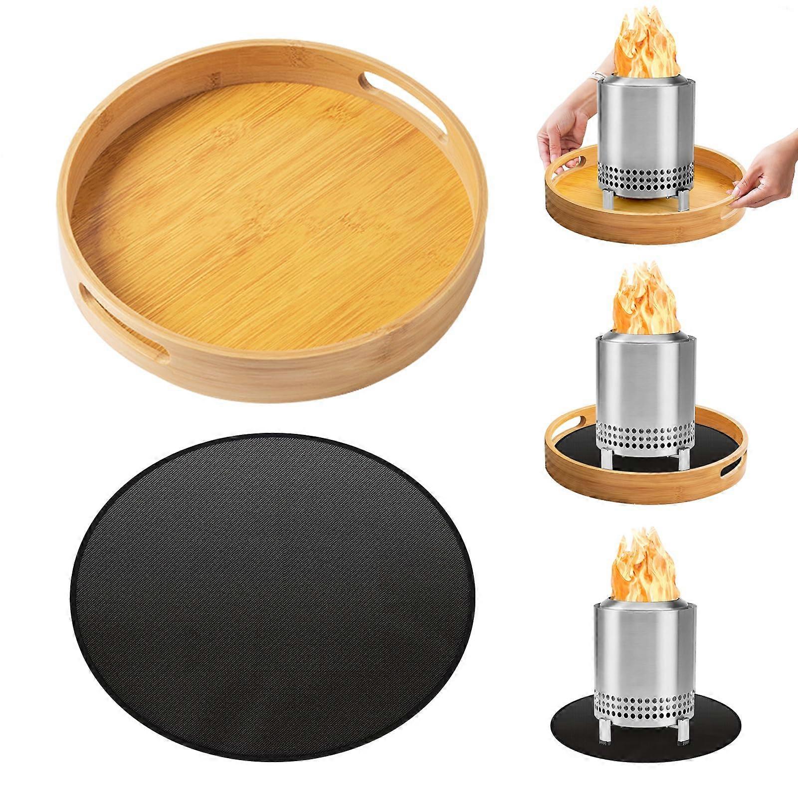 Tabletop Fire Pit Mat with Bamboo Tray for Solo Stove Mesa XL, Heat Resistant Surface Protector