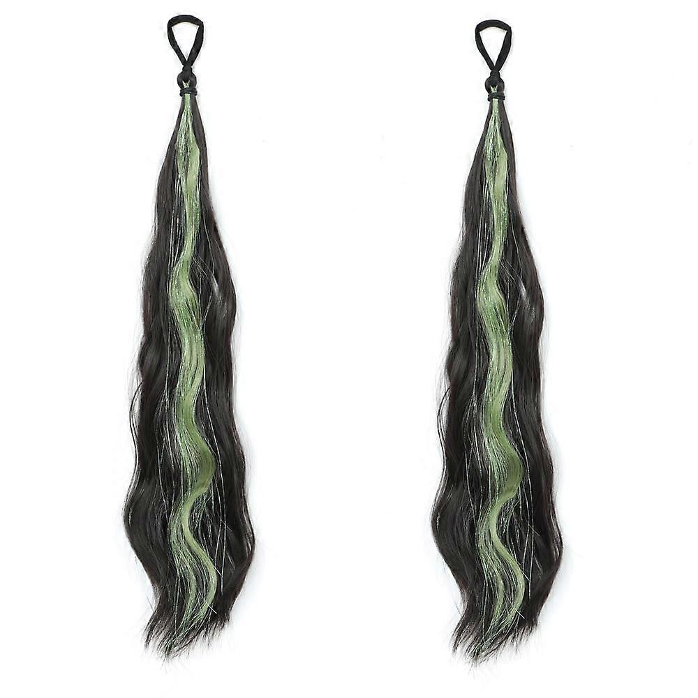 Kids Green Ponytail Hair Extension with Tinsel Highlight, Wavy Synthetic, Easy Elastic Attachment