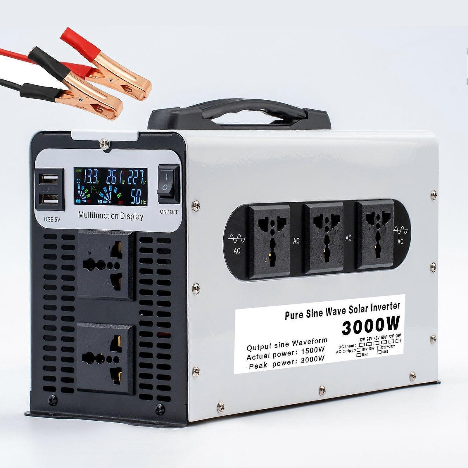 3000W Pure Sine Wave Power Inverter 12V 24V 48V to 110V 220V DC to AC Converter for RV Solar OffGrid with LCD Display and USB