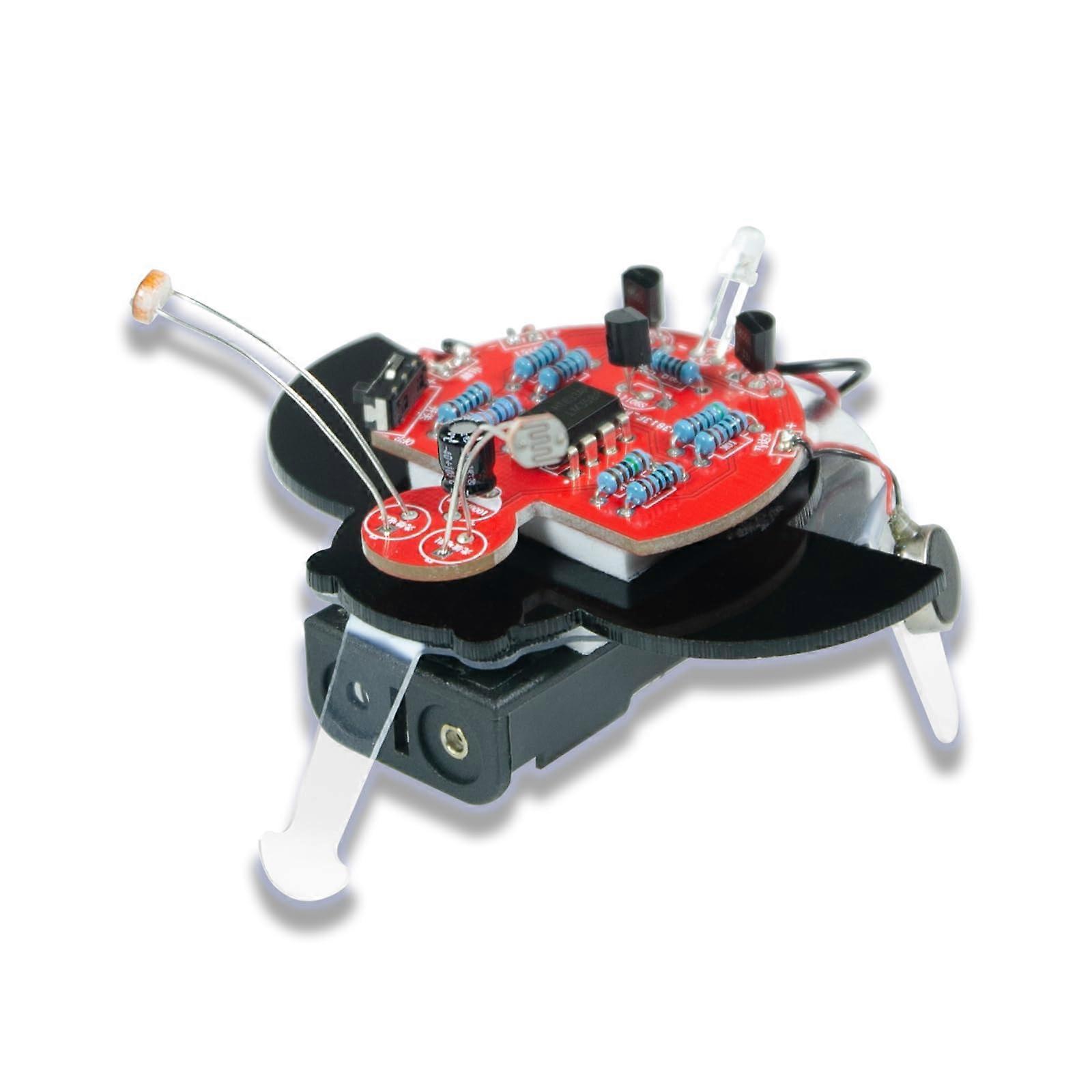 Product overview A lightsensitive firefly robot that combines simple electronics, handson soldering, and playful motion. The robot senses light with head tentacles, activates vibration motors in its legs, and moves toward the light source while its tail emits a breathing LED glow to simulate a real firefly. Key benefits Teaches practical electronics and soldering skills through guided assembly, making it ideal for beginners and hobbyists. Demonstrates reactive movement and basic sensormotor interaction: light detection drives motor vibration and directional motion. Provides a visual, lowlight effect with a tail breathing LED that slowly brightens and dims, useful as an educational prop or decorative night accent. Compact and easy to assemble, offering a satisfying build experience without requiring advanced prior knowledge. Main features Lightsensitive movement: dual tentacle light sensors detect left and right light inputs and trigger the corresponding leg vibration motor so the robot moves toward the light. Tail breathing light: LED tail cycles in a breathing pattern to simulate natural firefly glow in dark environments. Soldering assembly: kit includes basic electronic components and requires soldering, allowing learners to practice soldering technique and component identification. Beginner friendly: components and assembly steps are designed for those to soldering and electronics; installation is straightforward. Included components and performance Light sensors in head tentacles for directional sensing. Two vibration motors mounted on left and right legs for simple locomotion. Tail LED with breathing light effect for realistic glow. Circuit parts suitable for entrylevel soldering and handson learning. Use scenarios Classroom or workshop: a practical project for STEM lessons on sensors, actuators, and basic circuits. Beginner maker project: a compact soldering and electronics kit for hobbyists wanting to learn component function and assembly. Decorative or interactive display: a small, glowing robotic figure that reacts to light for tabletop display or a lowlight conversation piece. Why choose this kit This firefly robot kit focuses on learning by doing. It provides clear, functional components that demonstrate how light sensing and simple motor control create movement. The breathing tail light adds a visual reward, while the soldering assembly builds practical skills and confidence. Ideal as a gift for learners, a classroom resource, or an introductory maker project.