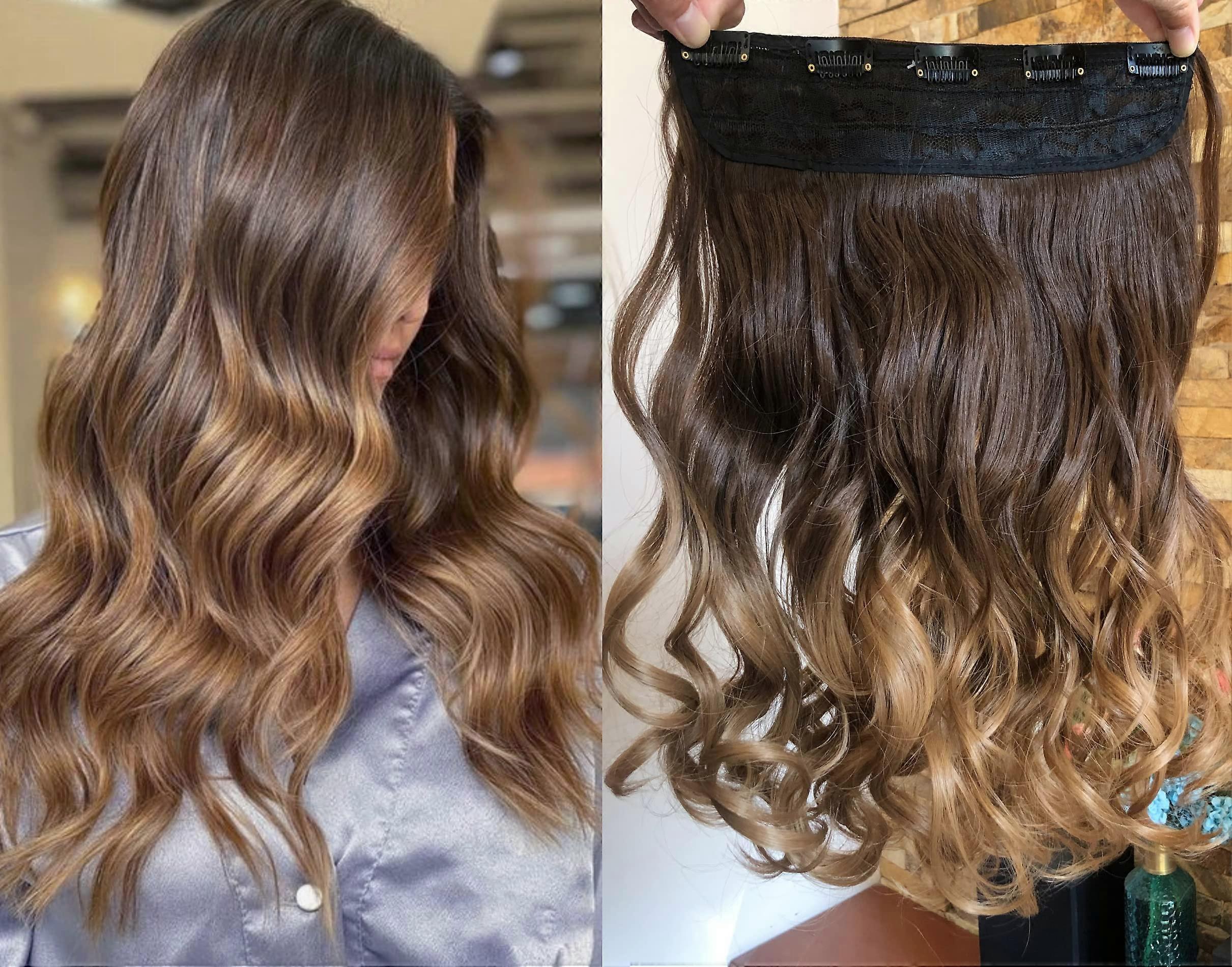 17 Inch Brown Blonde Ombre Clip in Hair Extensions One Piece Curly Wavy Hairpiece for Women