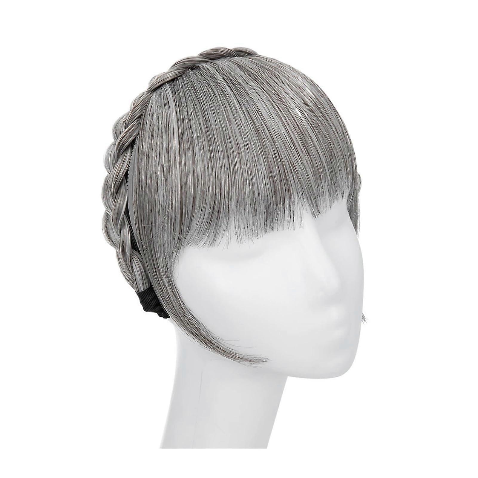 Clip in Bangs for Women Medium Gray Synthetic Hair Fringe with Long Sides Natural FaceFraming Style