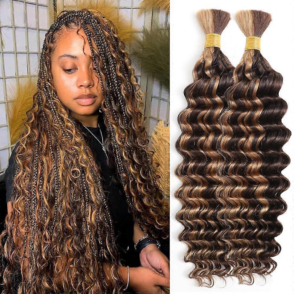 Highlight 4/27 Brazilian Deep Wave Human Braiding Hair 24 Inch 2 Pack Virgin Bulk Hair for Boho Braids