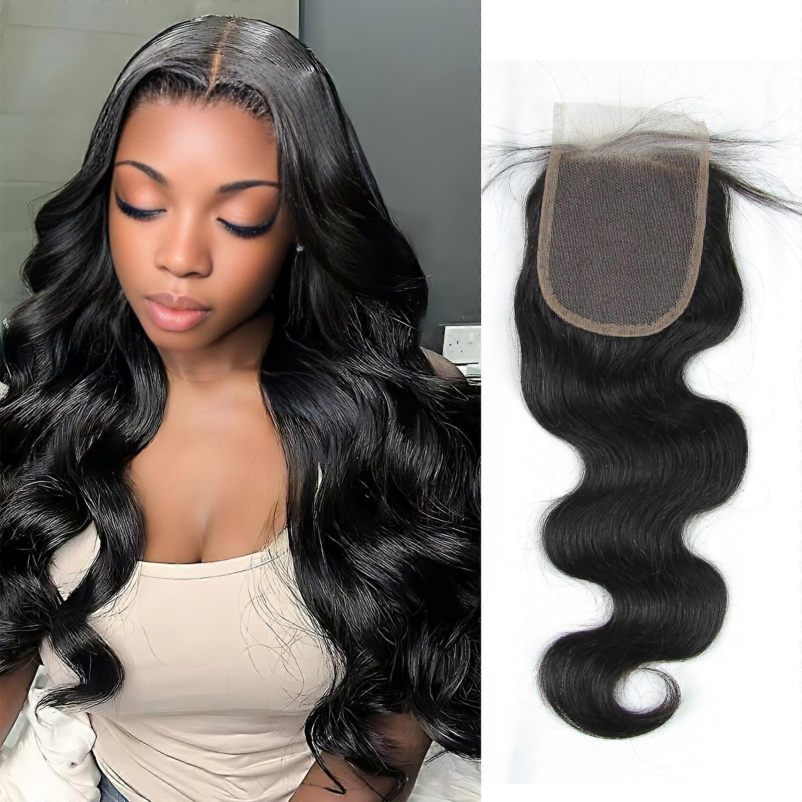 Brazilian Virgin Hair Closure 4x4 HD Lace Body Wave 14 Inch Invisible Pre‑Plucked Baby Hair
