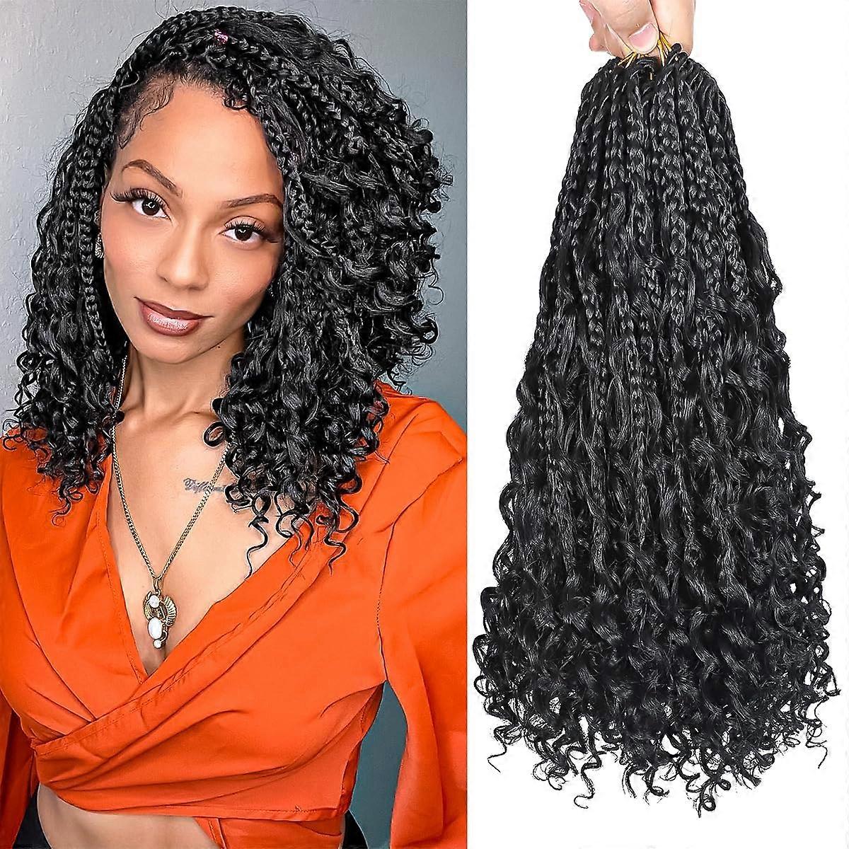 14 Inch Boho Goddess Box Braids Crochet Hair with Curly Ends, 8 Packs Synthetic 1B for Women