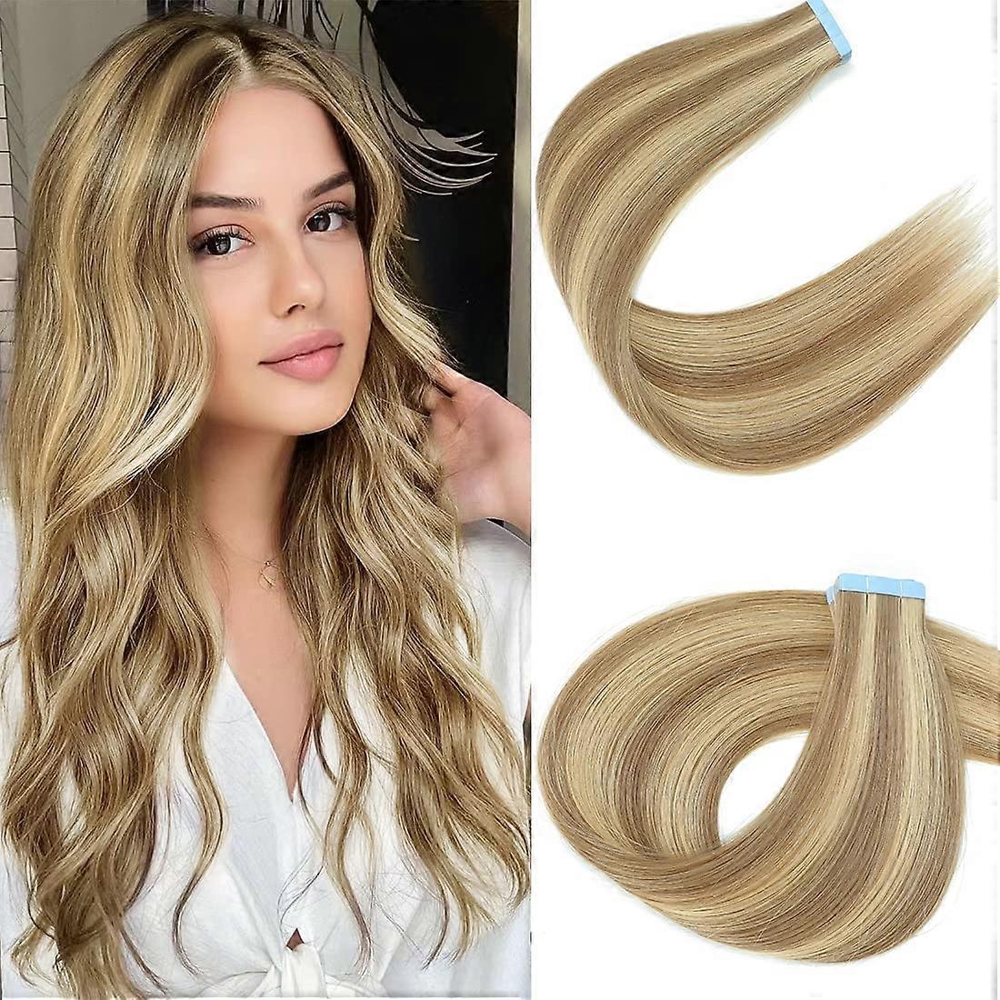 Invisible Tape in Human Hair Extensions 20 Inch Ash Blonde 100% Remy Hair Seamless Reusable Design