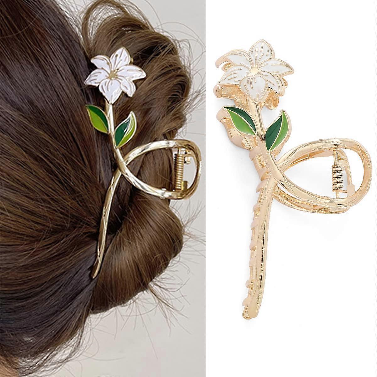 Metal Hair Claw Clip White Lily Flower Large NonSlip Hair Clip for Women Secure AllDay Hold