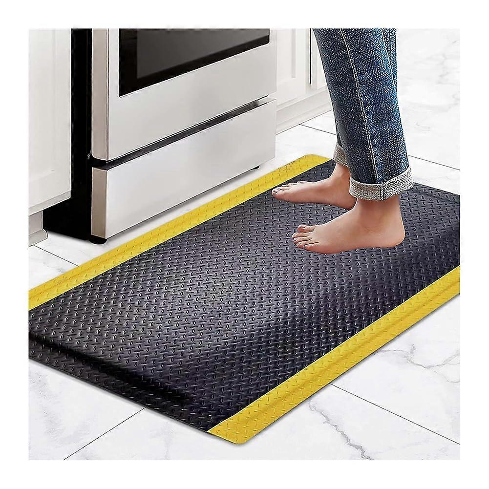 Anti Fatigue Standing Desk Mat, Black Yellow 60x120cm Cushioned Non Slip Waterproof Floor Mat for Office and Warehouse