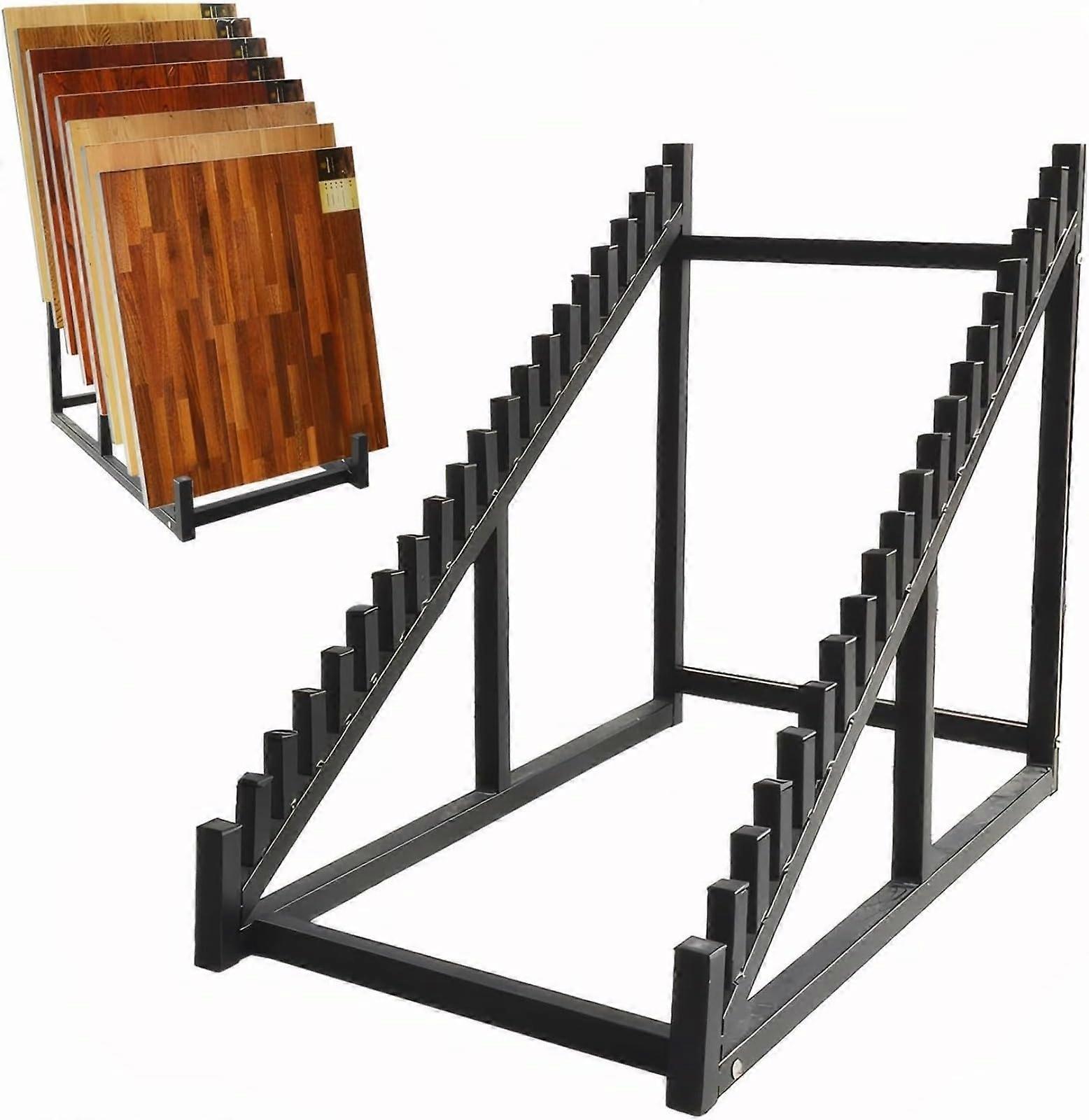 Spacesaving floor sample display rack designed for showrooms, design studios, and jobsite sample organization. Holds a wide range of materials including floor tile samples, ceramic tiles, glass, hardwood samples, and sample boards. Key features Compact overall size: 79 x 40 x 60 cm (31.1 x 15.7 x 23.6 inches), ideal for floor placement without occupying excessive space. Large capacity: Holds up to 20 floor tile samples of varying sizes, keeping assortments easy to view and access. Stable, sturdy construction: Built from metal with a triangular support structure for reliable loadbearing and reduced wobble or tilt. Slotted organization: Multiple evenly spaced slots provide a neat, upright display. Each slot is 1.8 cm (0.7 inch) wide to accommodate a variety of sample thicknesses. Quick assembly: Designed for straightforward setup so the rack is ready for use with minimal effort. Practical applications Showroom display: Present tile, glass, and hardwood samples in an orderly, professional layout for customers to compare options side by side. Contractor or interior designer use: Keep essential samples organized on site or in a studio for faster selection and client presentations. Retail or warehouse sample storage: Store and rotate samples efficiently while maintaining easy visibility and access. Why this rack This display rack combines compact dimensions, capacity, and a stable metal frame to make sample management simpler and more organized. The slotted layout protects samples from damage while allowing quick inspection and selection. Suitable wherever sample presentation and storage need to be efficient and professional.