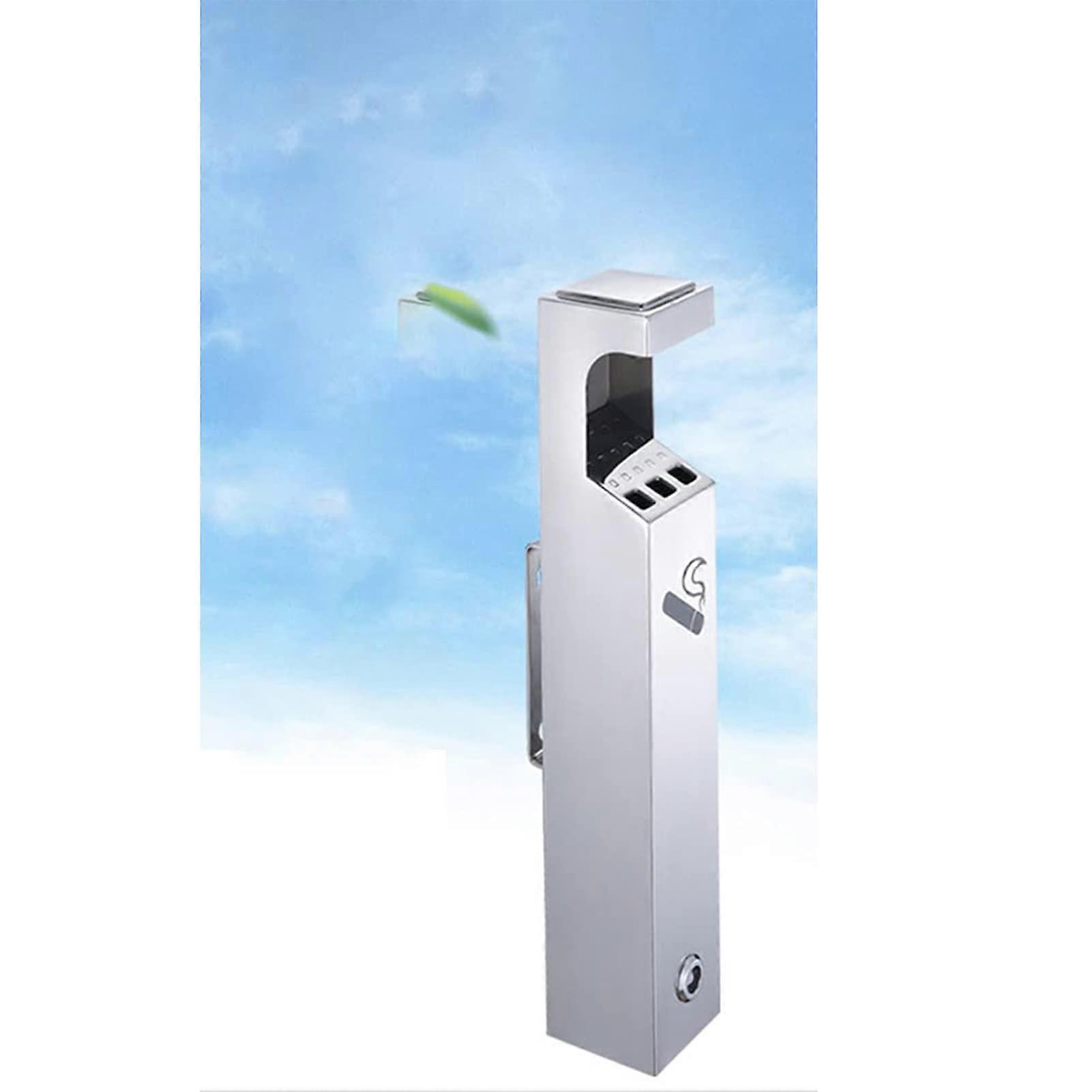 Outdoor Wall Mounted Ashtray Stainless Steel Cigarette Butt Receptacle with Rainproof Lock and SpaceSaving Design, Silver