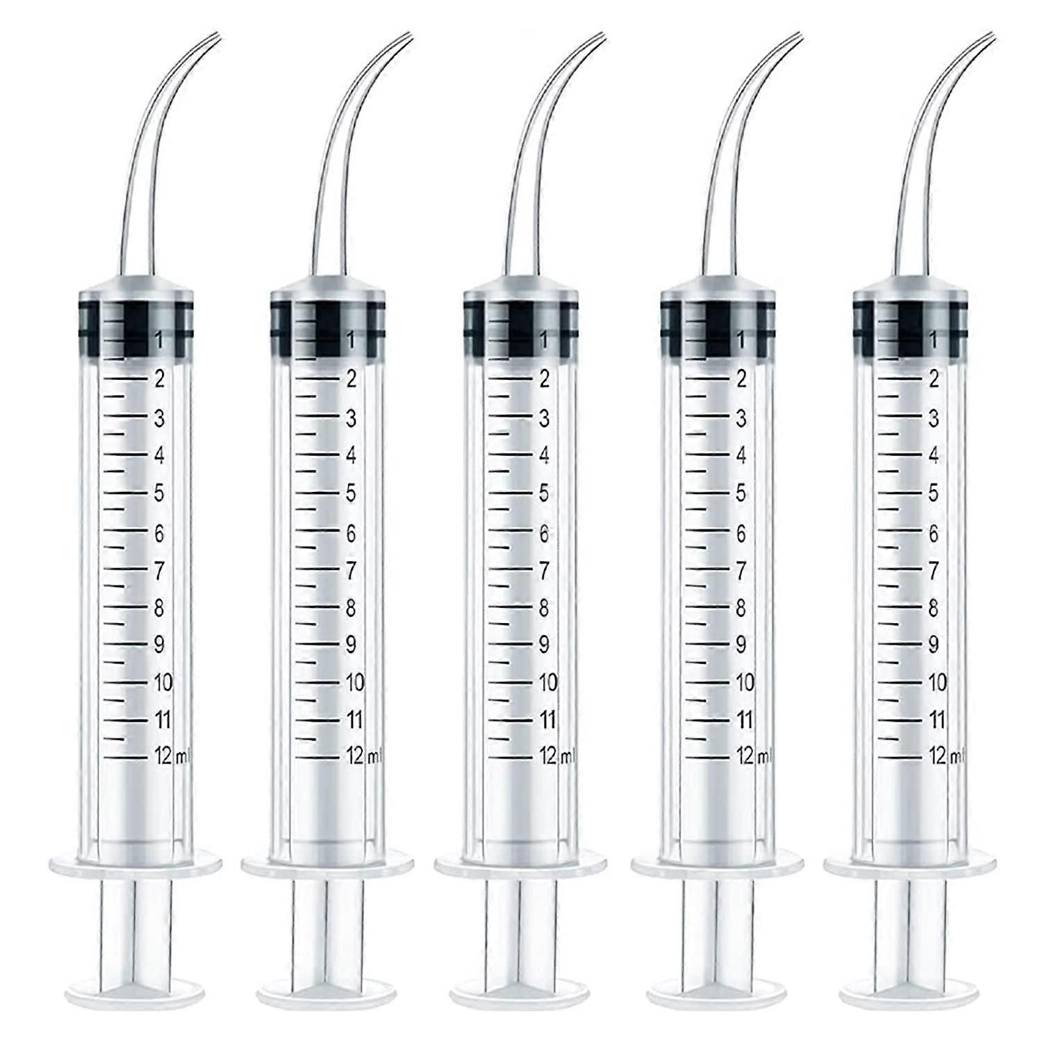 12ml Curved Tip Dental Irrigation Syringe Pack of 5, Disposable Oral Rinse Syringe for Precise Liquid Control