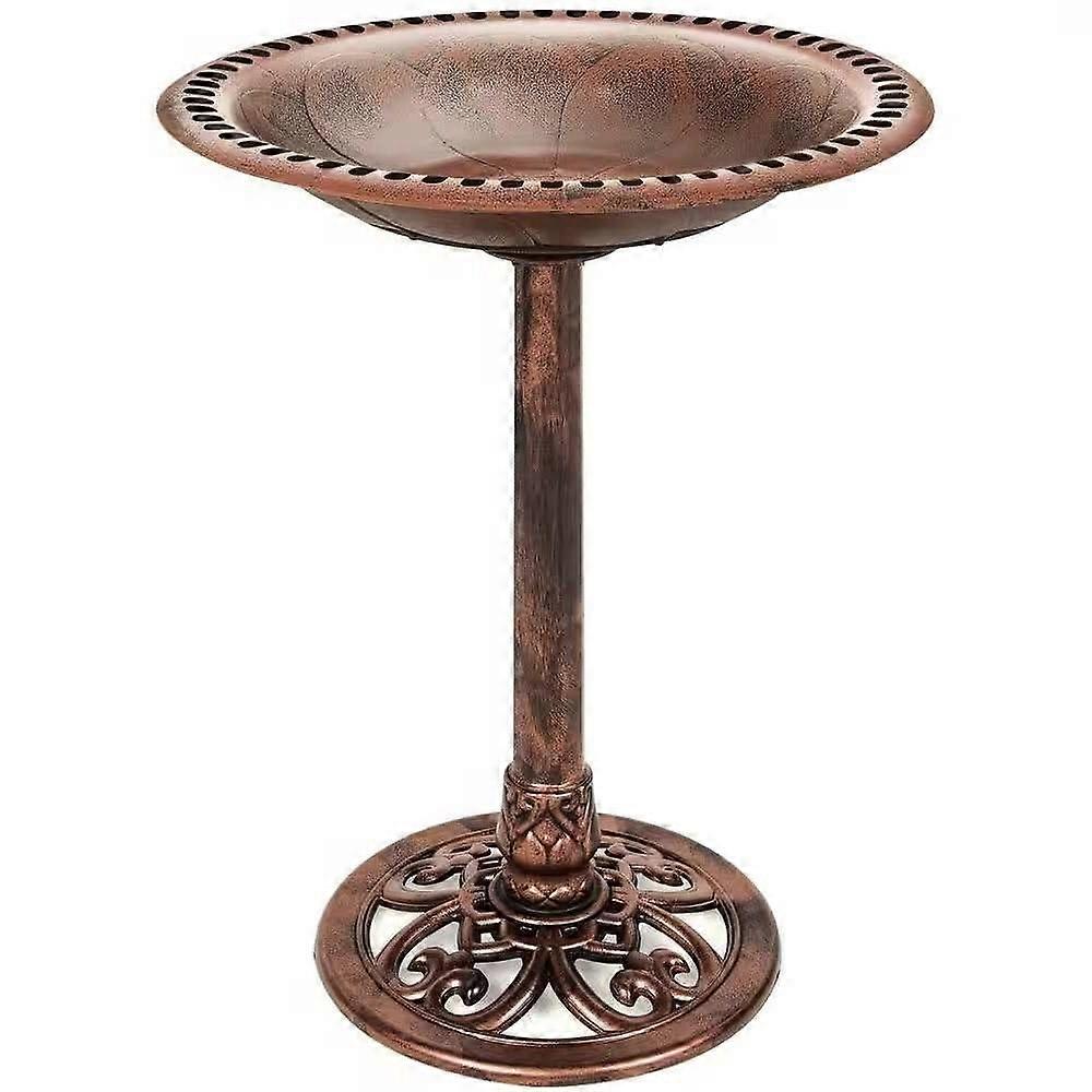 Rustic Aged Copper Polyresin Outdoor Bird Bath with Weather Resistant and Easy Clean Basin
