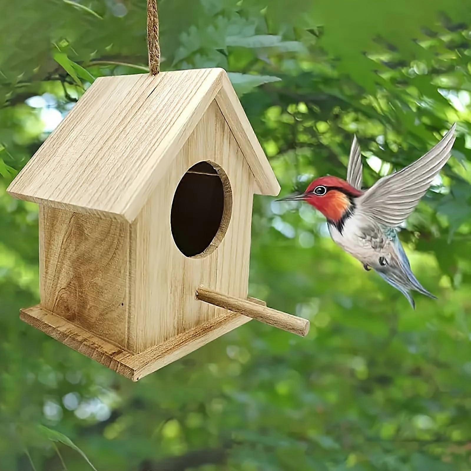 Handcrafted Wooden Birdhouse with Perch, Small Hanging Bird House for Garden, Natural Wood Finish