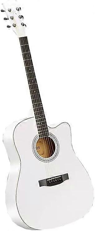 41 Inch White Acoustic Guitar Clear Balanced Sound Comfortable Curved Fingerboard with Backpack Straps