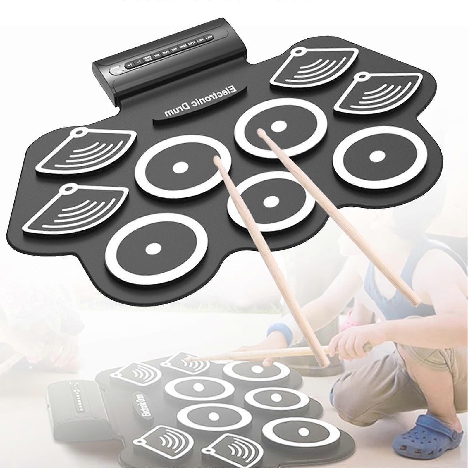 Portable Electronic Drum Kit with 9 Silicone Pads, Builtin Speakers, USB MIDI, Rechargeable, Foldable Design