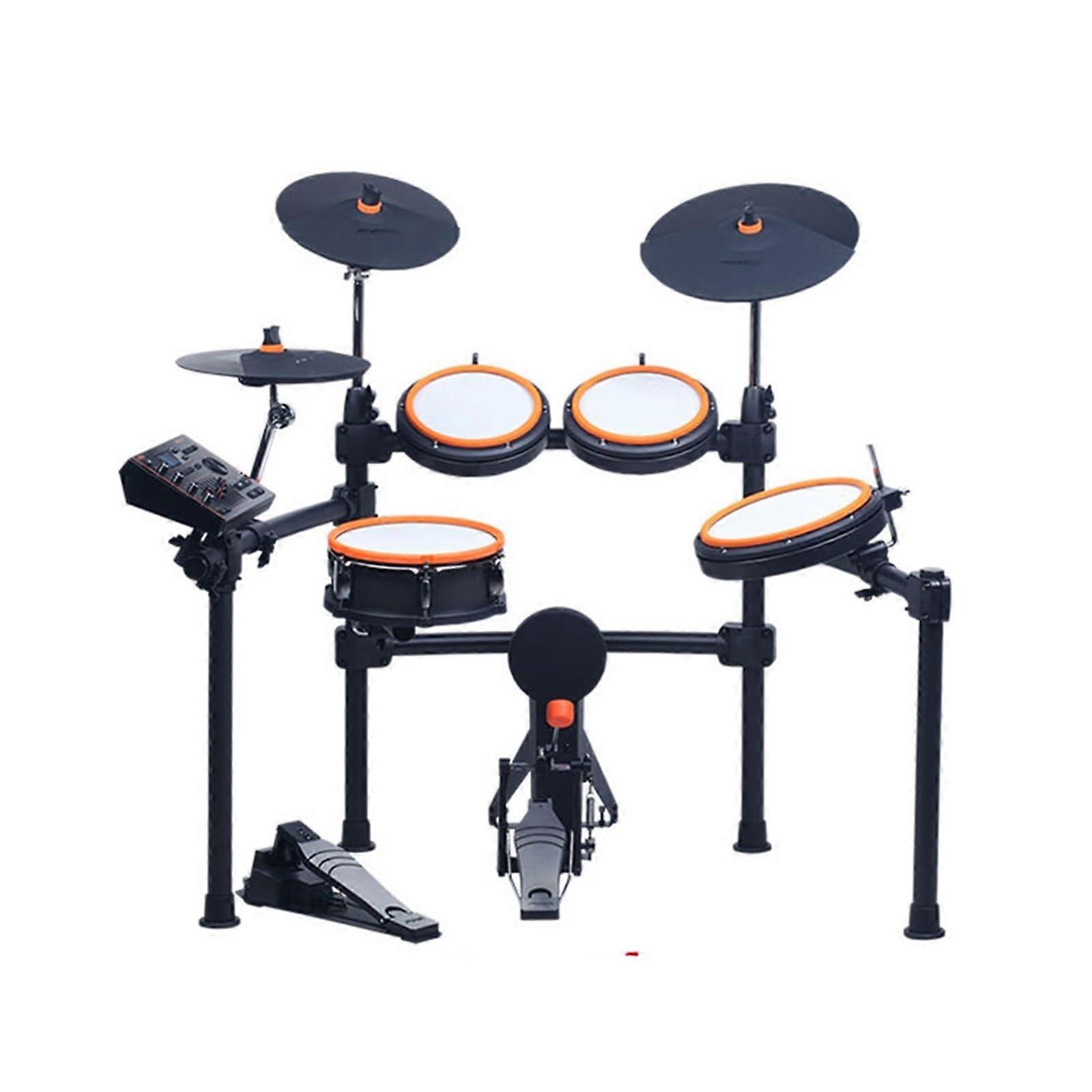 Electronic Drum Set for Adults, Mesh Drum Kit with Realistic Pads, Silent Foldable Design (Orange)