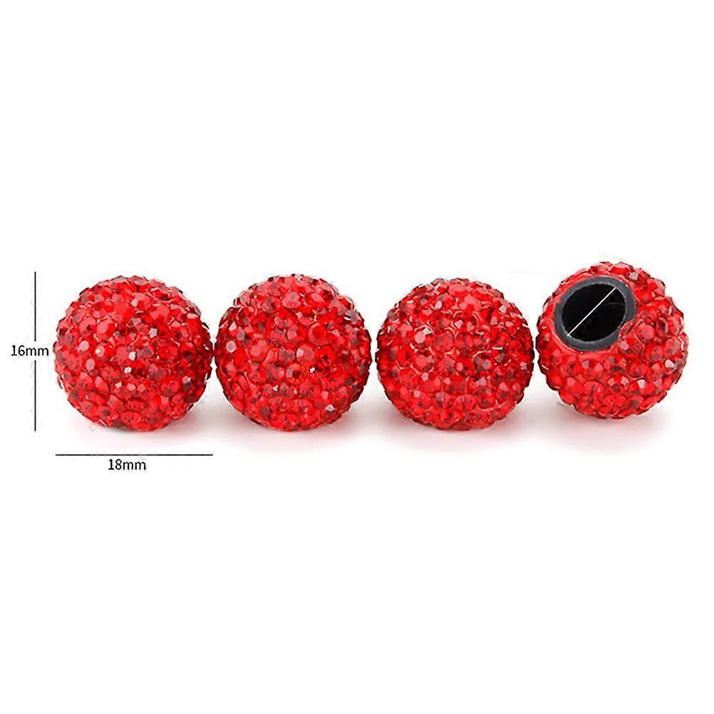 Tire Cover Crystal Balls 4Pcs Red Diamante Caps for Car Valve Protection