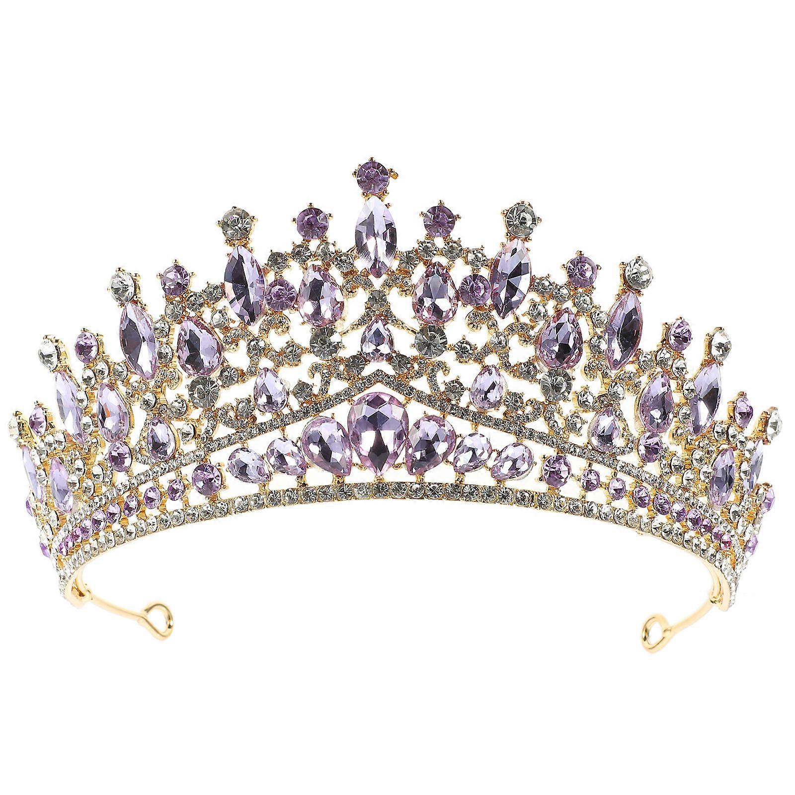 Purple Rhinestones Crown for Bride Decorative Bride Crown for Girls Headpiece