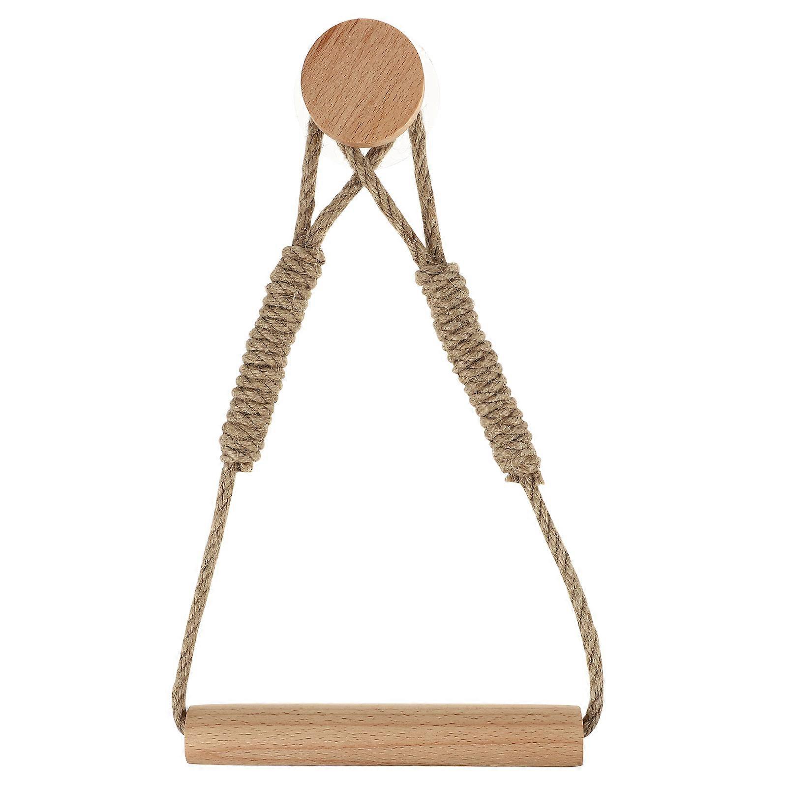 Retro Toilet Paper Holder Solid Wood Roll Paper Holder with Rope for Home